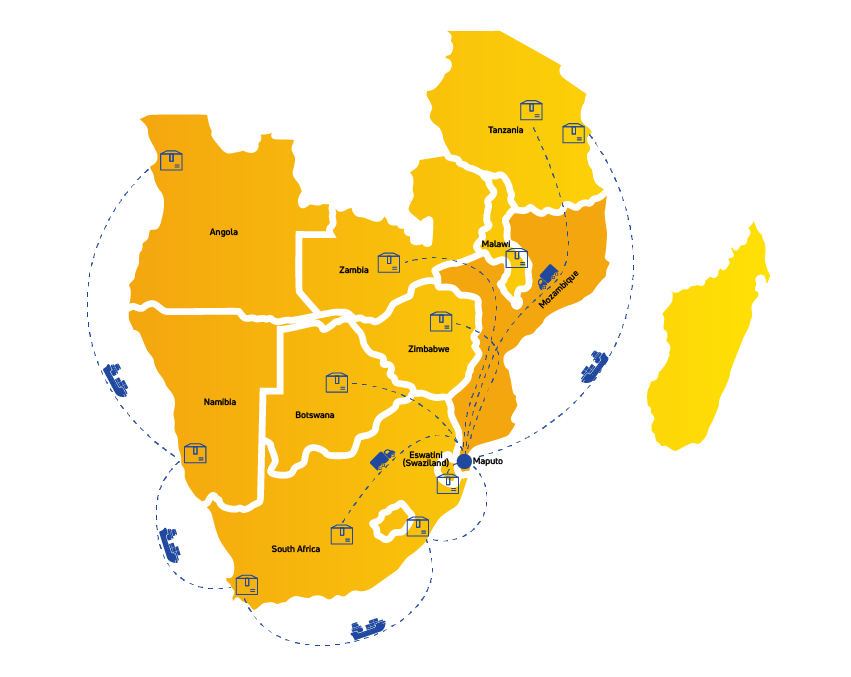 Operamos nos principais portos marítimos, aeroportos internacionais e postos fronteiriços de Moçambique, prestando apoio a cargas transportadas por via marítima, aérea e rodoviária.
